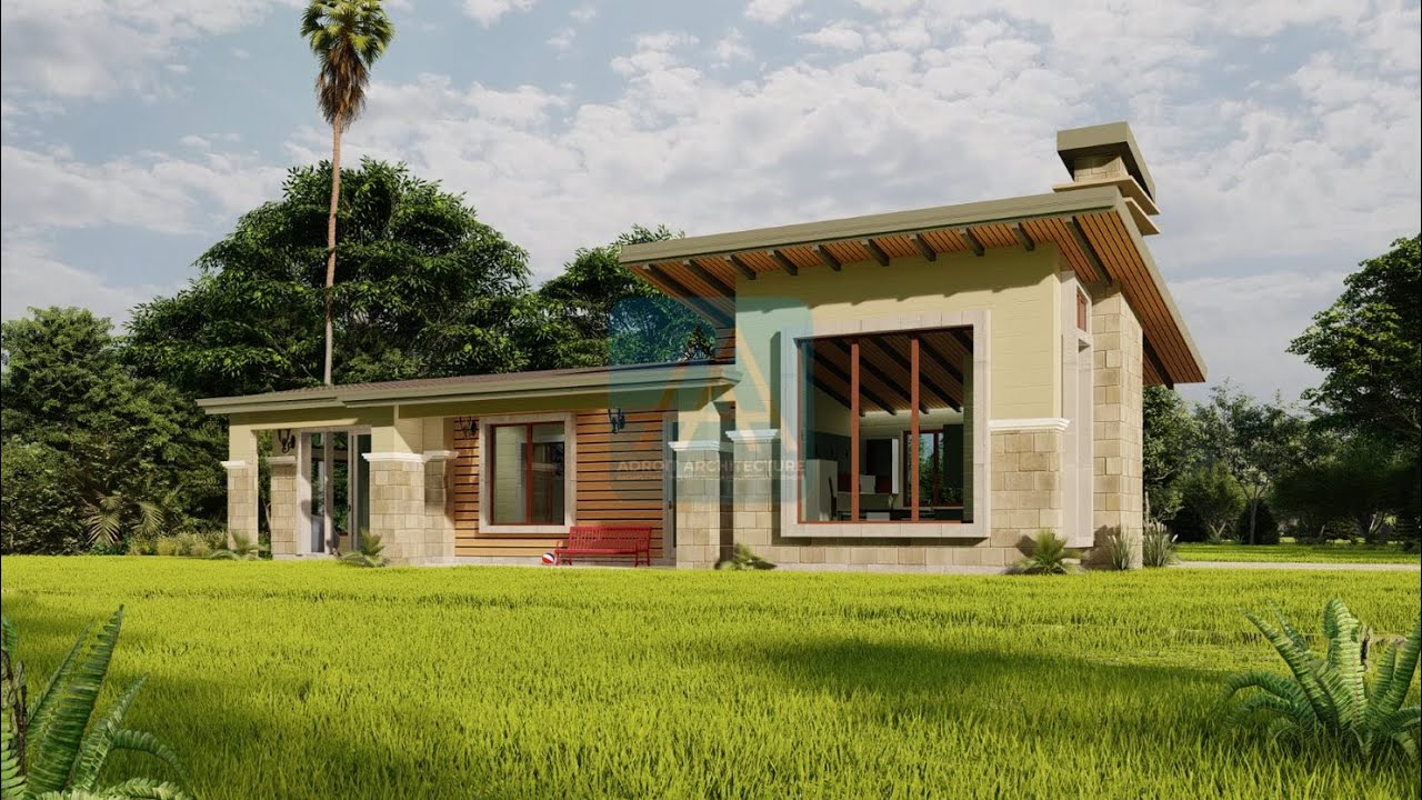 It’s a one-floor home with French countryside style like stucco walls, sloped roofs and rounded doorways. These houses feel warm and connected inside, perfect for smaller yards.